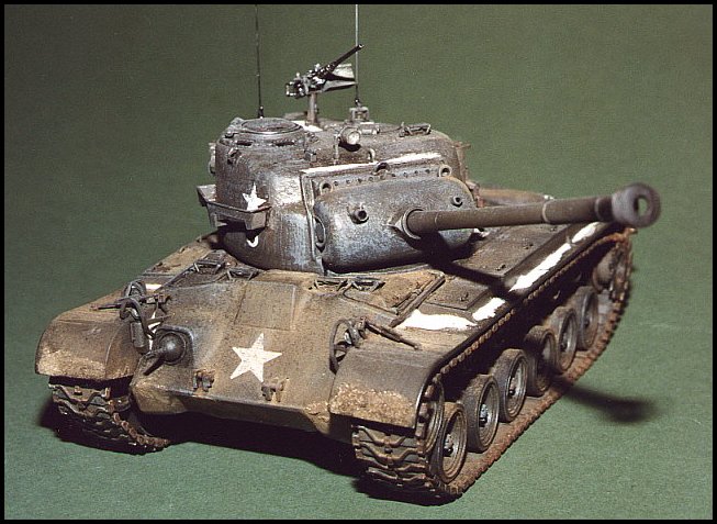 The vehicle was modelled from the Dragon kit 6801 basically out of the box, as a B. Co., 1 Marine Div. Pershing near Ham-hung, Korea 1950. While not based off a specific photo they were studied for appearance and weathering.