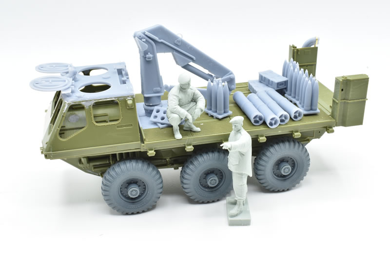 Rounding out the range are two superb 3D-printed figures depicting British Cold War-era soldiers typical of BOAR Stalwart crews. Sculpted by Ukrainian master figure modeller Sergiy Alekhno, the figures are marked “Works from Free Ukraine”. Figure ITAF001 is shown crouching with arms resting on his knees, while ITAF002 is standing and pointing to his left. Both are beautifully executed and full of character.