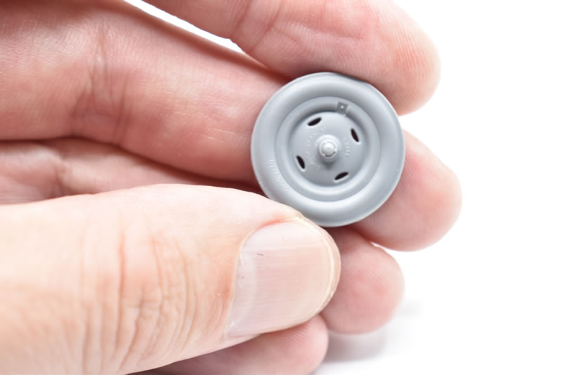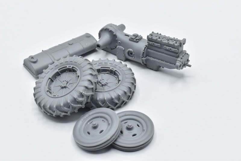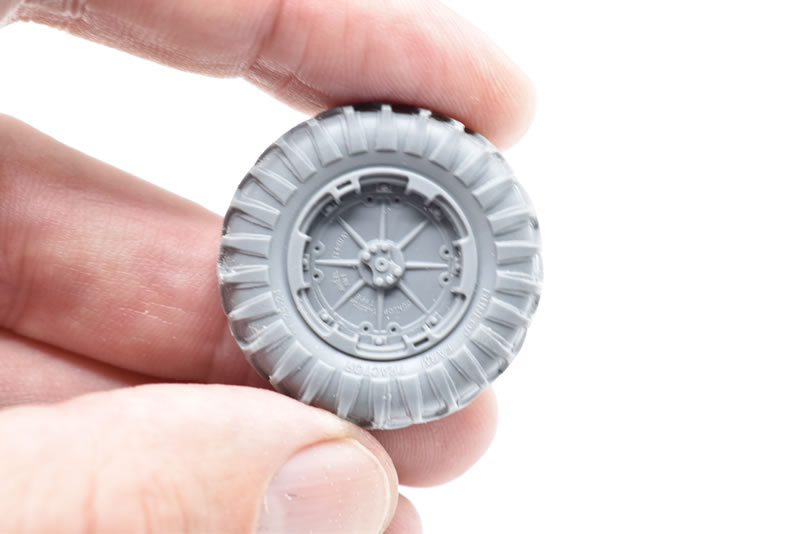 The large rear wheels are broken down into multiple sections that fit together cleanly to produce a convincingly chunky set of tyres. The smaller front wheels follow the same approach, capturing the look of the original very effectively.