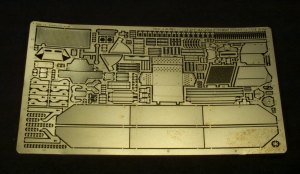 The set itself is etch into a 3” x 5” brass sheet and contains pretty well every detail you’ll need to add on an early Hetzer, plus a few more!  Included are: side skirts and mounts, exhaust shield, perforated grouser box, engine intake screen, remote control MG shields and small details including spare track brackets, tool clamps and jack details.
