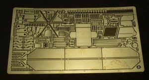 Included in the set are side skirts and mounts, grouser box, engine intake screen and sliding cover, remote control MG shiels (plus parts to detail the gun mount), command antennae as well as a plethora of small detail parts.