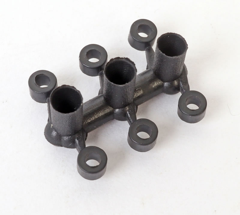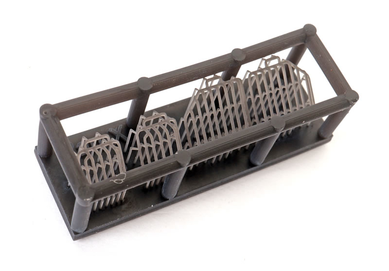 The fine headlight guards and two other small detail parts are presented in a 3d printed cage.