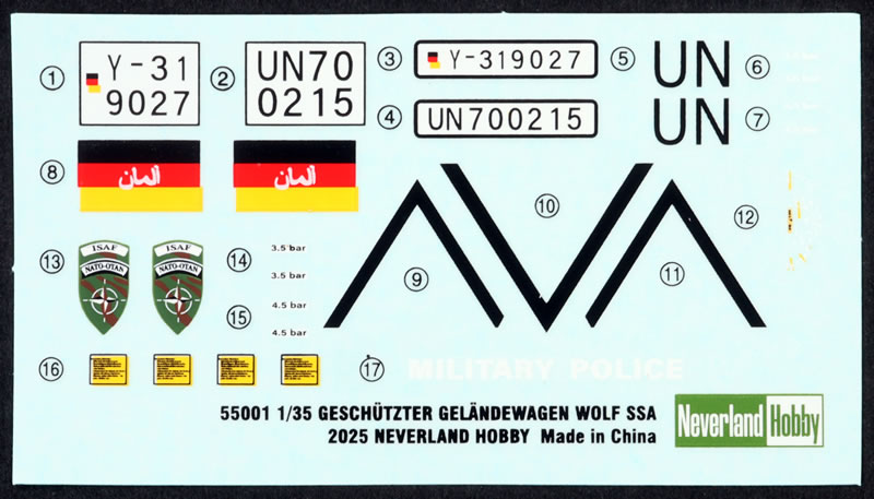 | Stock Number and Description | Neverland Hobby Kit No. 55001 - Geschützter Geländewagen Wolf SSA |