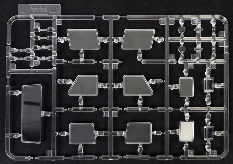 The windscreen and windows are all supplied as clear parts. Headlights, tail lights and indicators are on the clear sprue too.