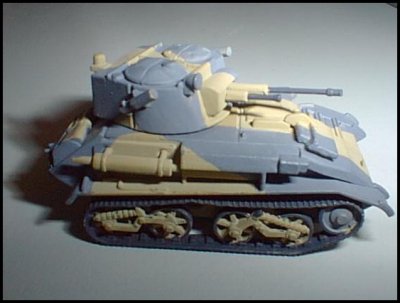 In BEF service the vehicle would be painted in the g3 middle bronze green no. 23, - g4, deep bronze green no. 24 scheme, but recent research by M.Sammer, has indicated that the lighter colour may have been g5 light bronze green no.22. painted in a disruptive pattern, the next theatre of operations that the light tank served in was the middle east, here the schemes ranged from plain light stone no. 61, and portland stone no.64. to the very colourful caunter scheme, anyone wanting to paint their vehicle in this scheme is recommended to read M. Stammer's series on the caunter scheme, recently published in Tankette volumes no. 33/6.